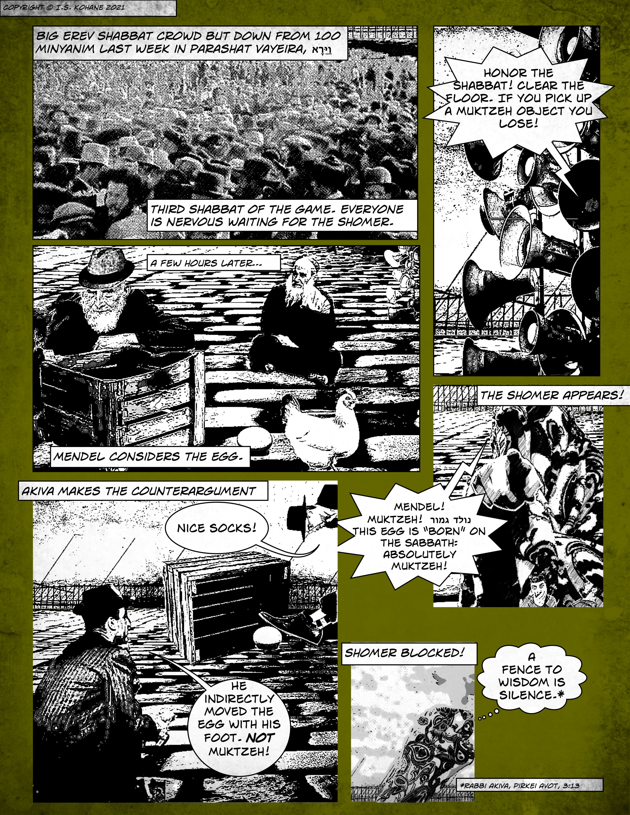 In the Squid Game, lessons of trust, mistrust, selfishness and altruism are learned through a vivid, life-and-death game. Here we have an equally high-stakes competition where the rules of the game are those of Muktzeh which have been laid down over the centuries by Talmudic authorities. The rules of Muktzeh (מוקצה), which means "set aside", define what can be moved during the Sabbath or Jewish holidays. Can our protagonists make it through the Muktzeh Game without violating those rules?